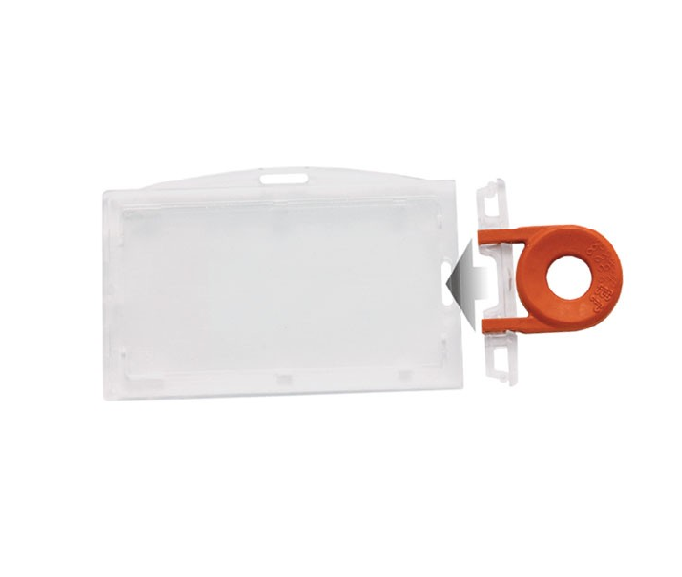 1840-3012Porte-carte convertible qui possède une pince rotative lui permettant d'être utilisé en format vertical ou horizontal (disponible en 4 couleurs). Vendu en paquet de 50.
