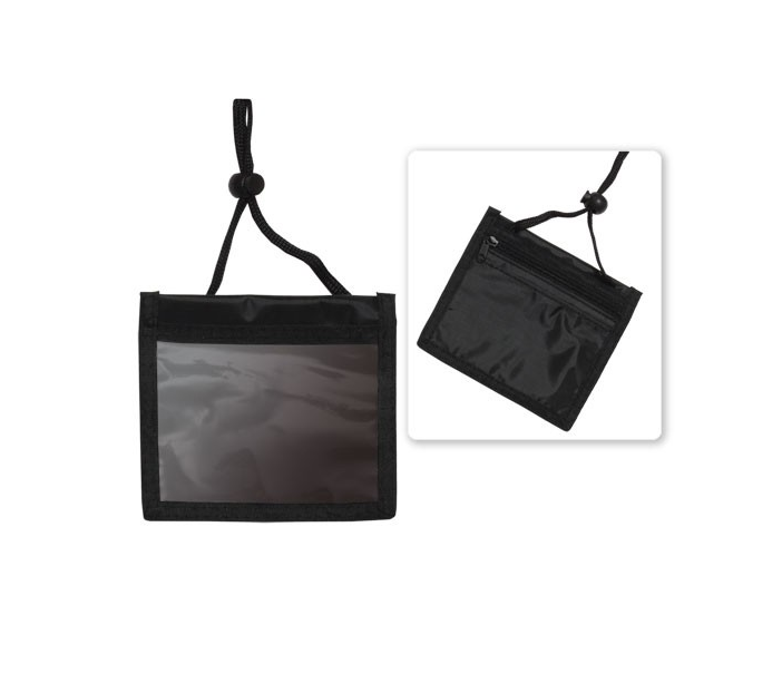 1860-2601Porte-carte à 3 poches avec lanière ajustable autour du cou. Ce produit peut être utilisé autant comme porte-cartes que comme portefeuille. Il est disponible en 2 couleurs. Vendu en paquet de 100.