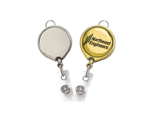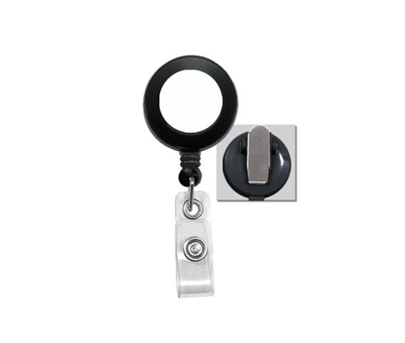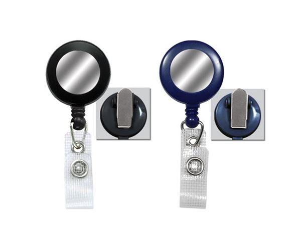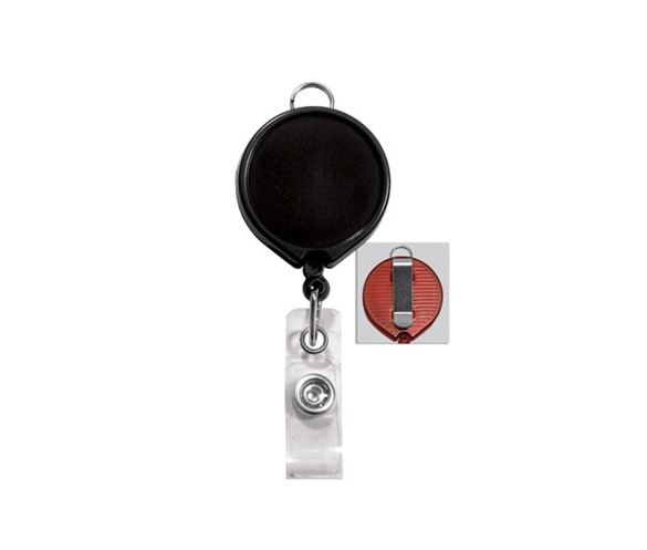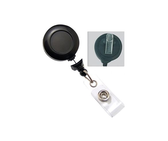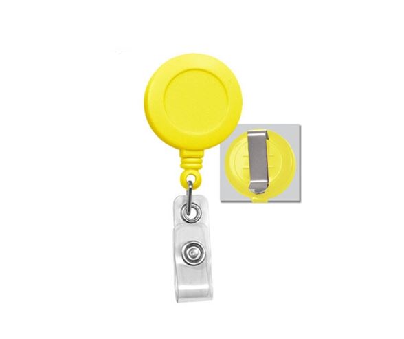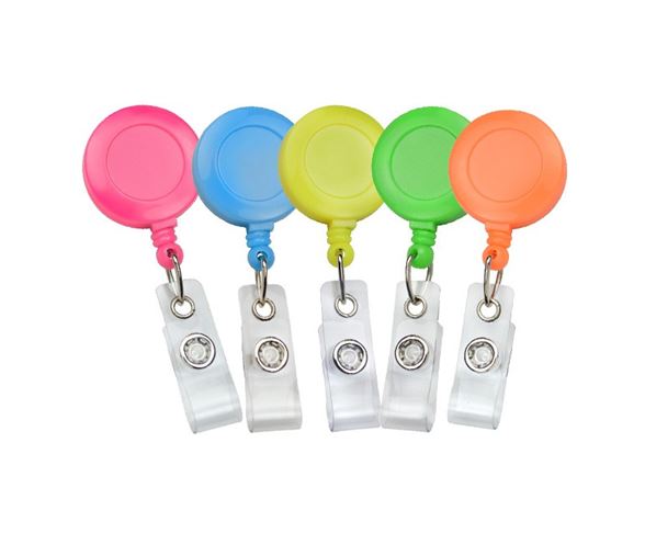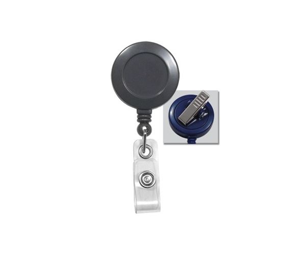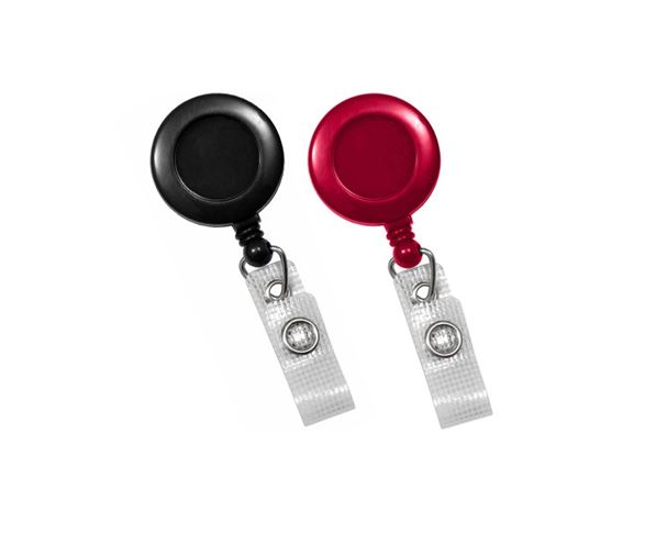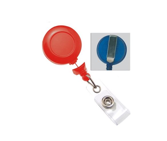 2120-7620Ce moulinet rond est composé d'une pince à ressort pivotant et d'une courroie en vinyle transparent. Cet item est disponible en cinq couleurs. Vendu en paquet de 25.