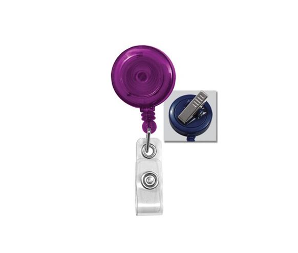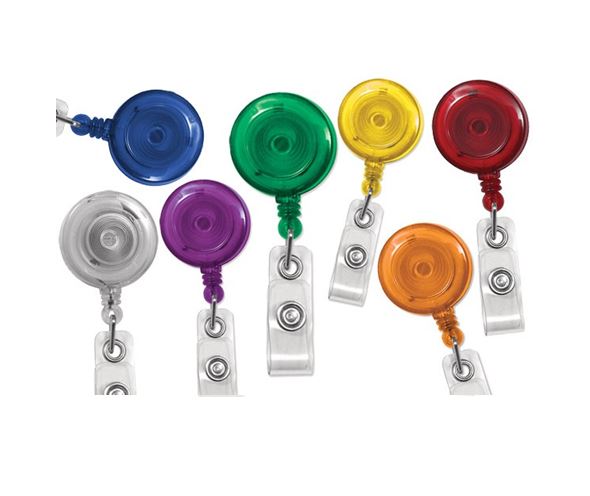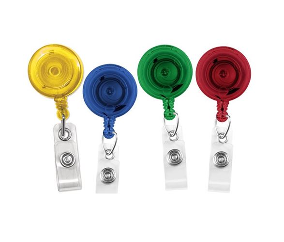 2120-7622Ce moulinet translucide rond est composé d'une pince à ressort pivotant et d'une courroie en vinyle transparent. Cet item est disponible en six couleurs. Vendu en paquet de 25.