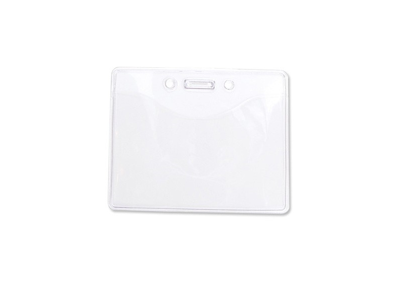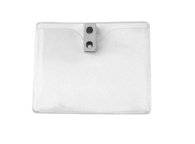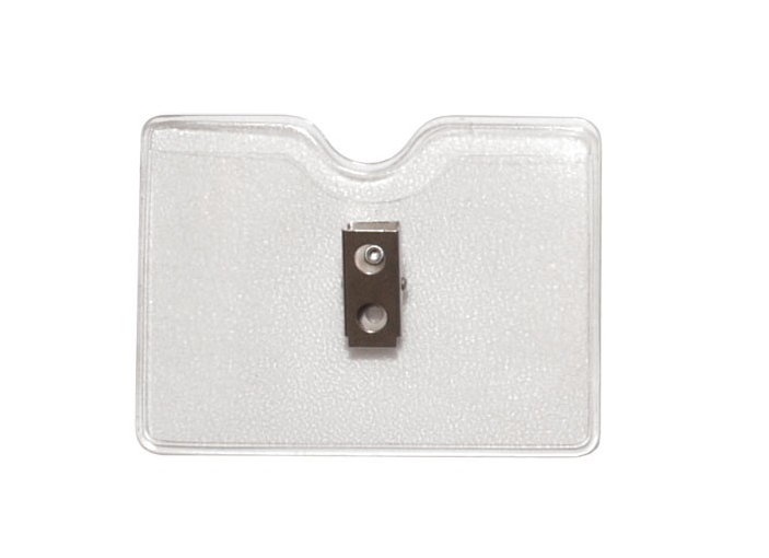 1810-1300Pochette en vinyle transparent de grandeur militaire/gouvernementale munie d'une pince à 2 trous permettant un attachement sécure aux vêtements (2 formats). Vendue en paquet de 100.